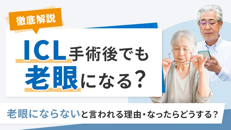 そのため、「ICLを受ければ老眼にならない」と考えるのではなく、年齢とともに視力が変化することを前提に考えましょう。